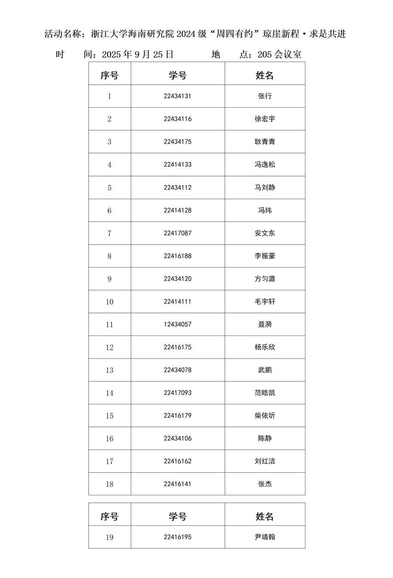 关于海南研究院“周四有约”琼崖新程求是共进签到名单的公示